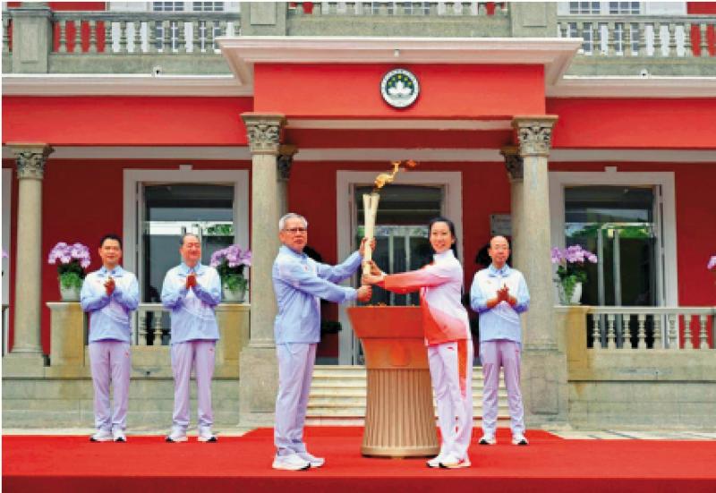 图片:澳门特别行政区行政长官岑浩辉(左)将火炬传递给第一棒火炬手李毅。 【大公报讯】第十五届全运会澳门赛区火炬传递活动开幕式2日上午9时30分在政府总部举行。澳门行政长官岑浩辉、中央人民政府驻澳门特别行政区联络办公室主任郑新聪、中华人民共和国外交部特派员公署特派员刘显发等嘉宾出席。仪式开始时,守火人手持火灯进入区域,然后点燃火棒,用棒上的火焰点燃火锅。消防卫士将火炬交给行政长官岑浩辉,随后将火炬授予第一火炬手、2023年杭州亚运会武术金牌得主李毅。 50位火炬手途经澳门多个著名地标。路线有以“文化融合”为主题,全长约2.6公里。最后的火炬手是空手道运动员郭建恒,他在2023年杭州亚运会上获得两枚银牌,并在2021年第十四届全运会上赢得了澳门历史性的第一枚奖牌。他到达了圣保罗废墟中的终点线,并点燃了火种盆地。澳门行政长官岑浩辉在火炬传递仪式上致辞时表示,亚运会的国家火炬象征着光明和希望,火炬传递是力量的汇聚。火炬由50名火炬手传递,展现澳门这座奋力同行的城市之美,传承团结拼搏的体育精神。他续说,以集聚全运会火炬为新的起点,坚持“简单、安全、精彩”的理念,走出去,筹办澳门地区各项活动,为全运会和残奥会的成功举办贡献力量,让“五运”独特之美绽放。“耀眼澳门”在更大的舞台上绽放光芒。