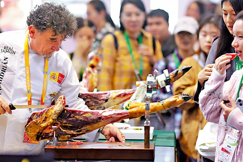 图:中国持续推动农产品进口多元化。图为去年进博会上西班牙火腿吸引众人。 \ 中新网 首都经济贸易大学国家经济安全研究中心主任郝玉标对大公报记者表示,近年来,我国持续推进农产品进口多元化战略。农产品进口多元化主要包括两个方面:一是进口来源多元化;二是进口品种多元化。在进口来源方面,中国逐渐从对美国等部分西方国家的依赖转向更加多元化的合作伙伴。 “一带一路”合作伙伴在中国农产品进口中日益重要。截至2018年,巴西已取代美国成为中国最大的农产品贸易国。郝玉标指出,2024年,排名前12位的农产品来源地为巴西、美国、阿根廷、加拿大、新西兰、澳大利亚、俄罗斯、乌拉圭、乌克兰、法国、印度尼西亚和哈萨克斯坦。其中,自美国农产品进口额逐年减少,而自巴西、阿根廷等国农产品进口额不断增加。从进口种类看,除小麦、大豆、水稻、玉米等四大粮食作物外,高粱、乳制品、肉禽、肉类及其加工品进口比重持续增加。